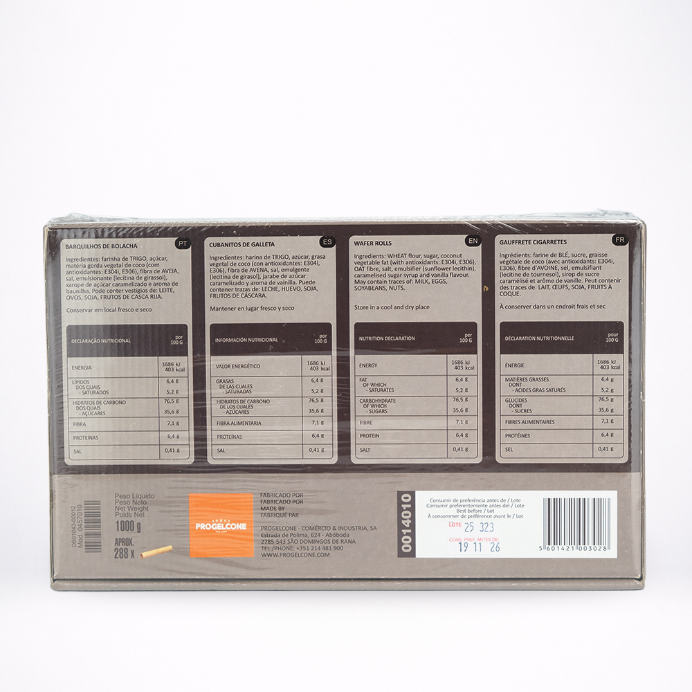 PT Ingredientes: Farinha de TRIGO, açúcar, matéria gorda vegetal de coco (com antioxidantes: E304i, E306), fibra de AVEIA, sal, emulsionante (lecitina de girassol), xarope de açúcar caramelizado e aroma de baunilha. Pode conter vestígios de: LEITE, OVOS, SOJA, FRUTOS DE CASCA RIJA. Conservar em local fresco e seco. Declaração nutricional por 100 g: Energia 1686 kJ / 403 kcal; Lípidos 6,4 g (dos quais saturados 5,2 g); Hidratos de carbono 76,5 g (dos quais açúcares 35,6 g); Fibra 7,1 g; Proteínas 6,4 g; Sal 0,41 g. Peso líquido: 1000 g.