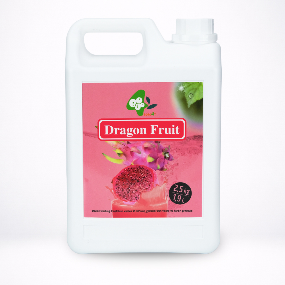 Xarope de Pitaya — PT Ingredientes: Xarope de frutose e glicose, água, concentrado de fruta do dragão (3,33%), açúcar, acidificante: E296, aroma, espessantes: E415, E407, E410, E412, corante: E163, conservante: E202, edulcorante: E950, corante: E133. Informação nutricional (100 g): Energia 1088 kJ / 260 kcal; Lípidos 0 g (sat. 0 g); Hidratos de carbono 65 g (açúcares 61 g); Proteínas 0 g; Sal 0 g. Peso líquido: 2,5 kg. Conservação: Conservar à temperatura ambiente, em local seco e sem odores. Após abertura, refrigerar. Importado por: Bubble Supply Lda, Rua Pimenta nº3, 1990-254 Lisboa, NIF 515895628